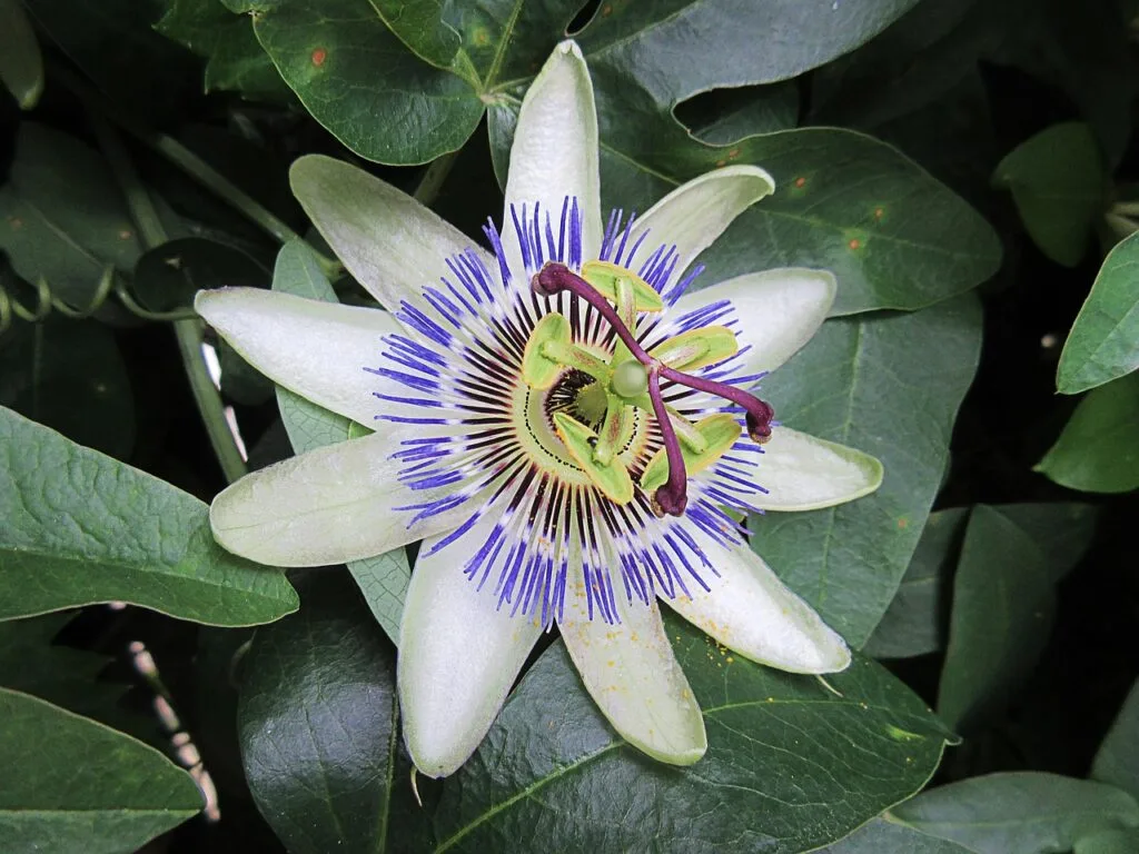 De passiebloem is misschien wel één van de mooiste bloemen die er is. Ze bestaat in verschillende kleuren, maar in Nederland zie je meestal de paars-witte variant, die na een mooie zomer donkergele vruchten kan geven.